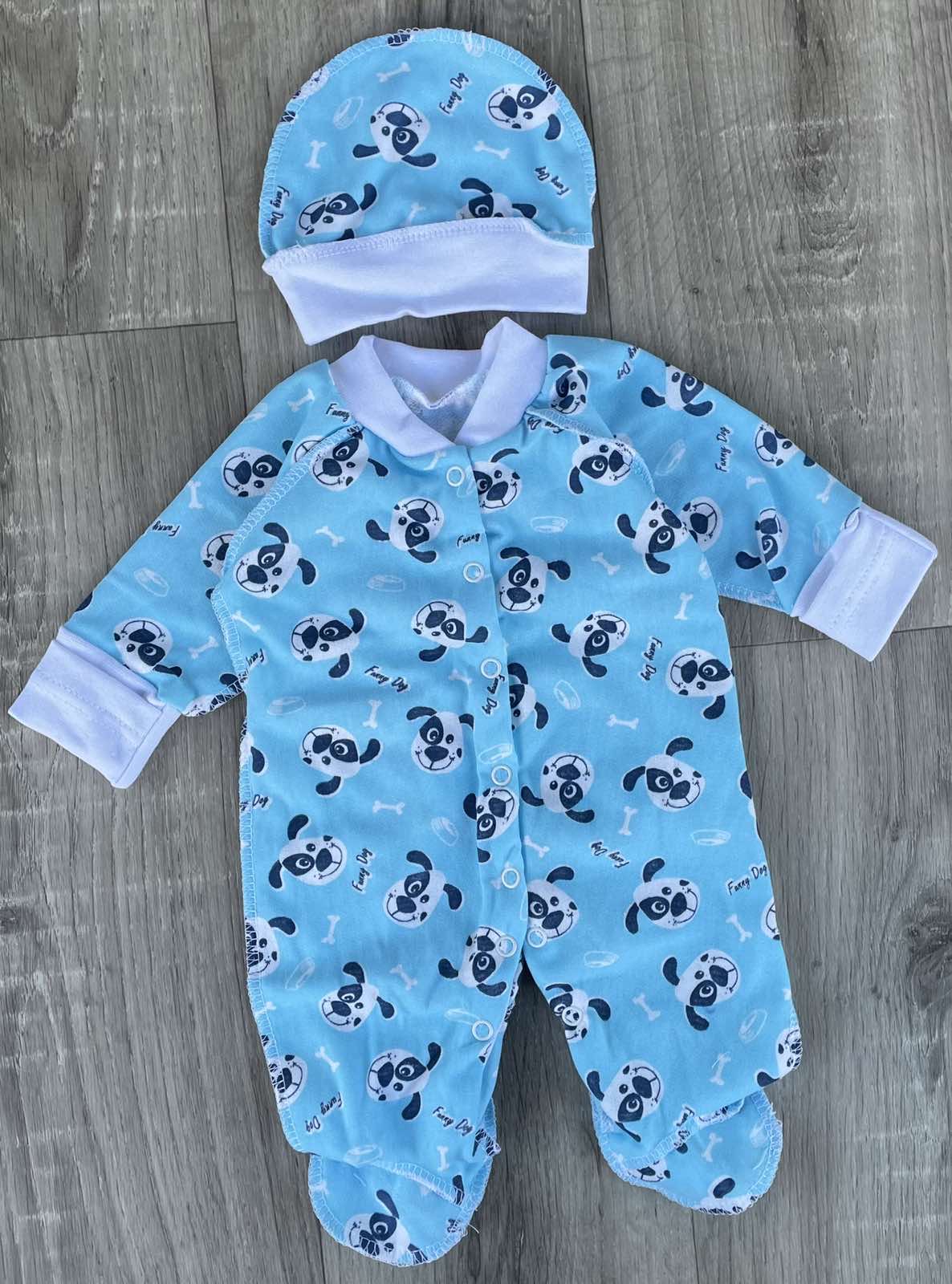 Чоловічок «Песики» блакитний, хлопчик 0-3-6 місяців оптом уп. - 3 шт.