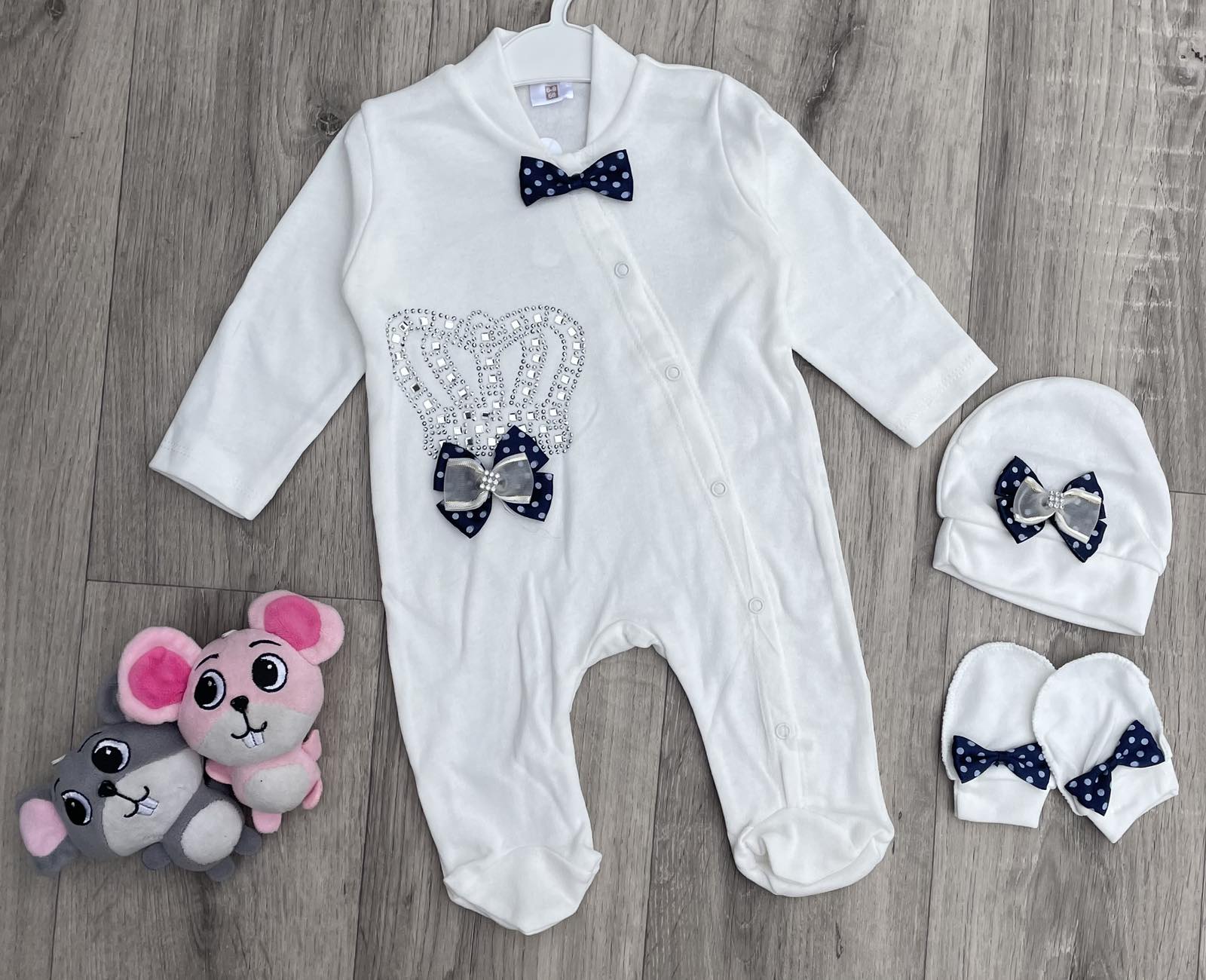 Чоловічок Pon Pon "Корона" молочний, хлопчик 0-3-6 місяців оптом уп. - 3 шт.