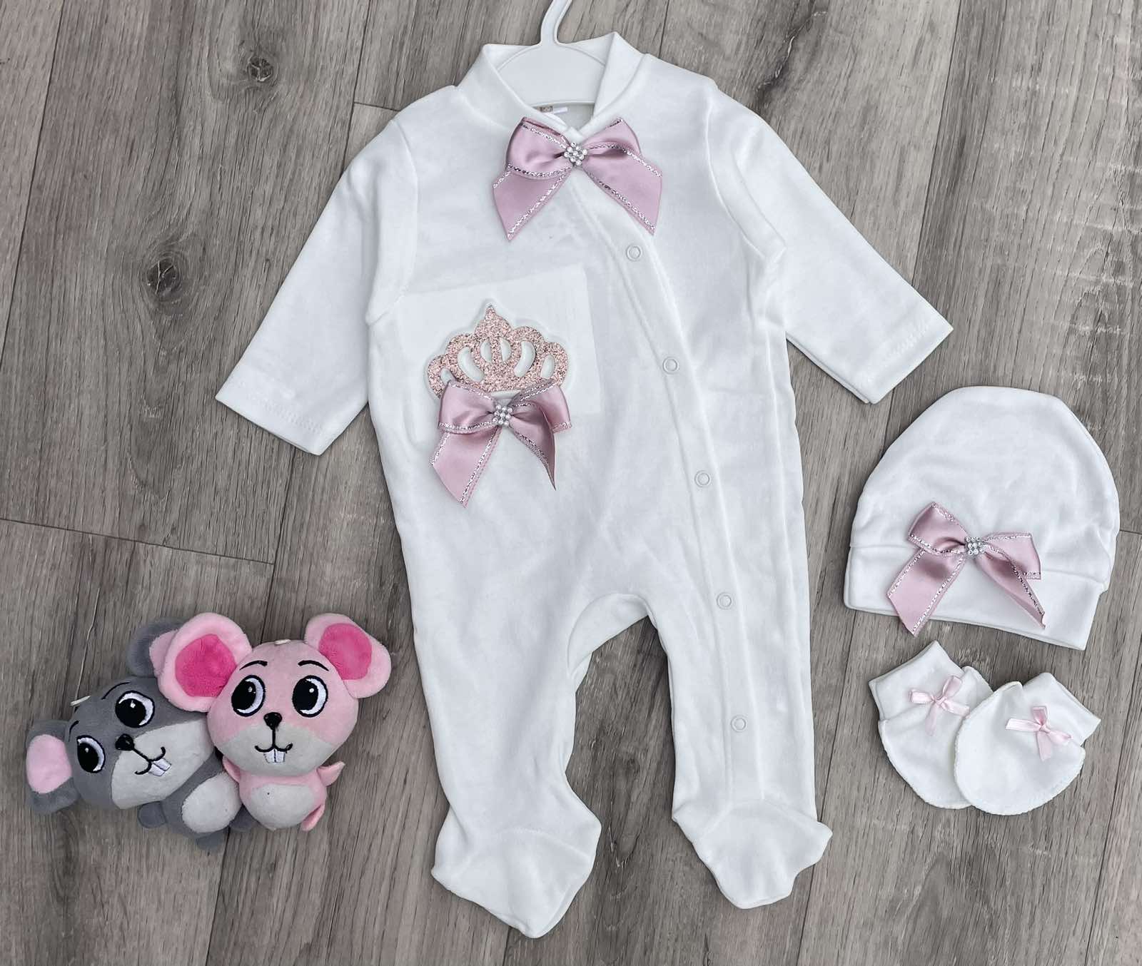 Чоловічок Pon Pon "Корона" молочний з рожевим, дівчинка 0-3-6 місяців оптом уп. - 3 шт.