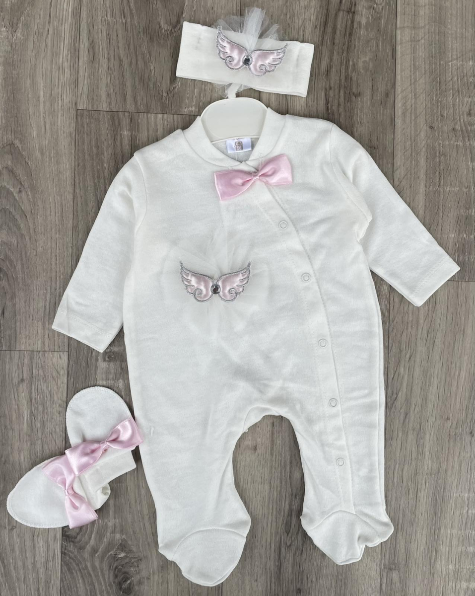 Чоловічок Pon Pon «Крильця» молочний з рожевим, дівчинка 0-3-6 місяців оптом уп. - 3 шт.