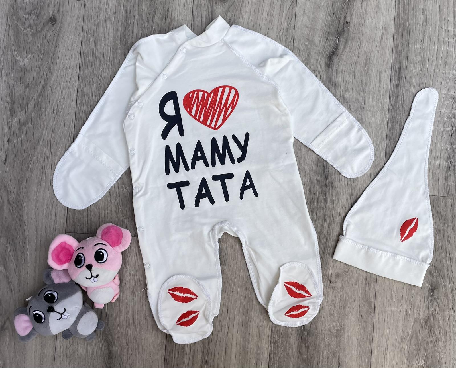 Чоловічок "Я ❤️ маму тату" молочний, унісекс 3-6-9 місяців оптом уп. - 3 шт.