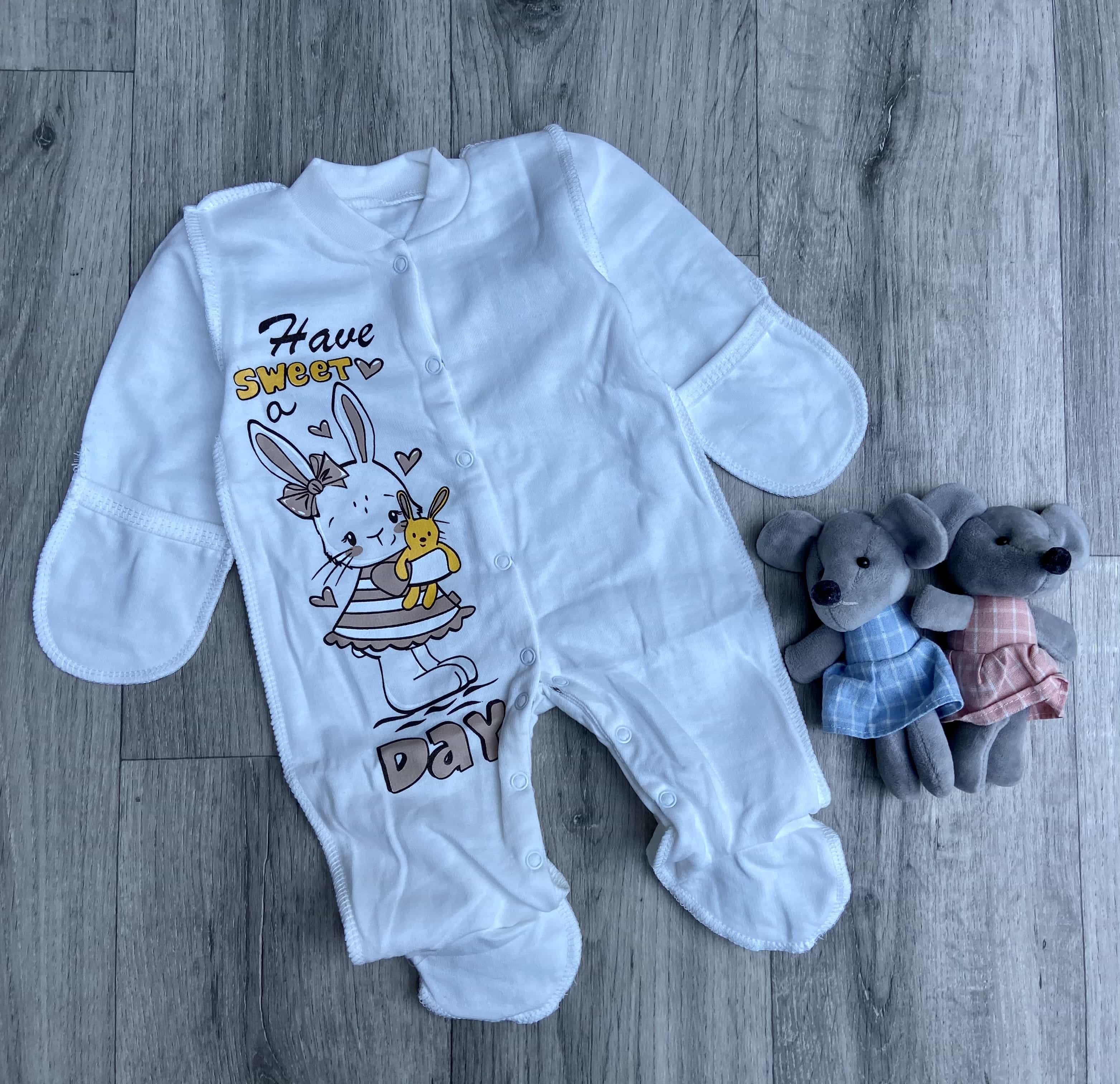 Чоловічок "Зайчик", молочний, унісекс 0-3-6 місяців оптом уп. - 3 шт.