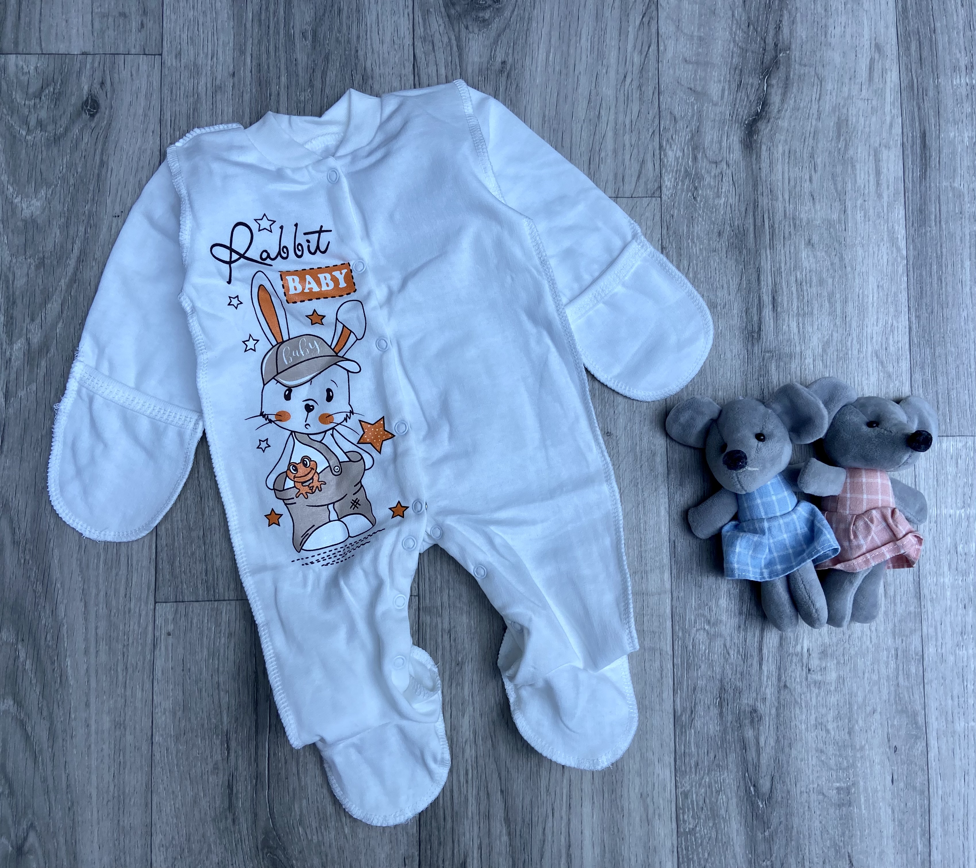 Чоловічок "Зайчик", молочний, унісекс 0-3-6 місяців оптом уп. - 3 шт.
