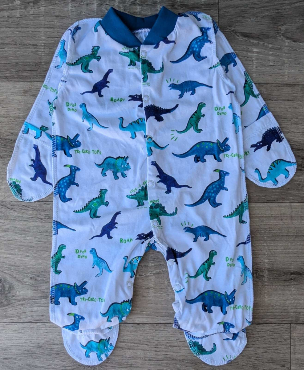 Человечек " динозавры" молочный, мальчики 0-3 месяцев оптом уп. - 3 шт.