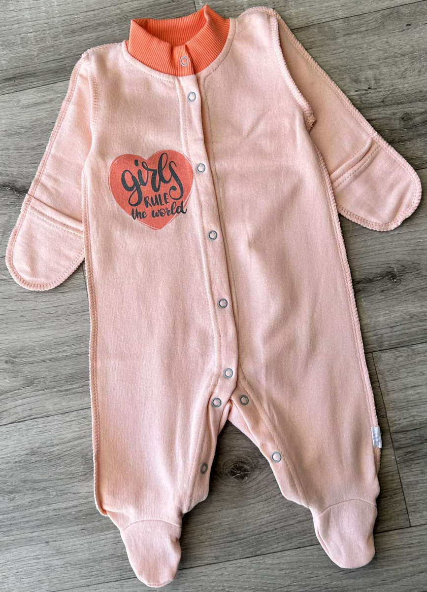 Чоловічок "Girls" персиковий, дівчинка 0-3-6-9-12 місяців оптом уп. - 5 шт.