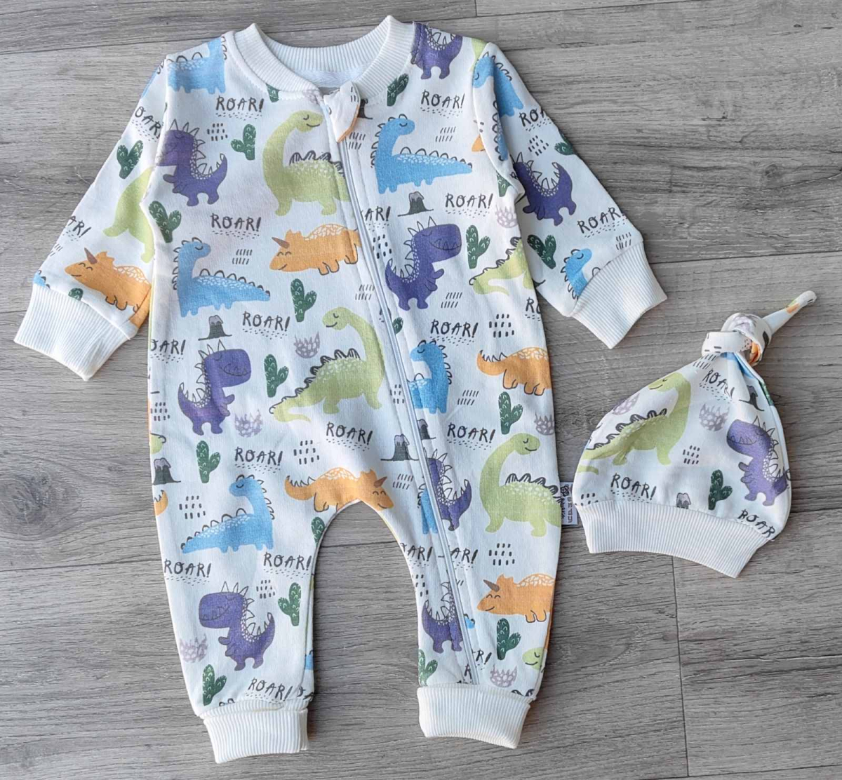 Чоловічок Kendy«Дино» білий, хлопчик 3-6-9-12 місяців оптом уп. - 4 шт.
