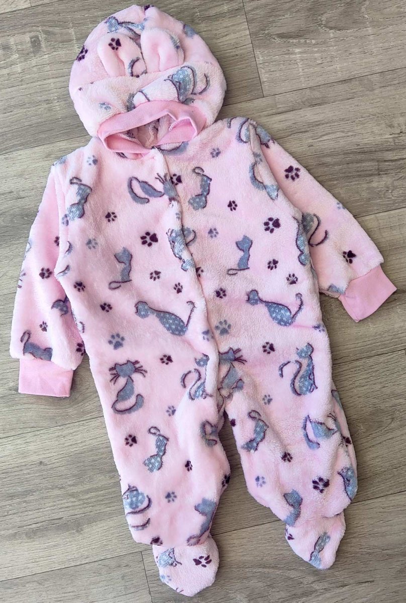 Чоловічок «Кішки» рожевий, дівчинка 6-9-12 місяців оптом уп. - 3 шт.