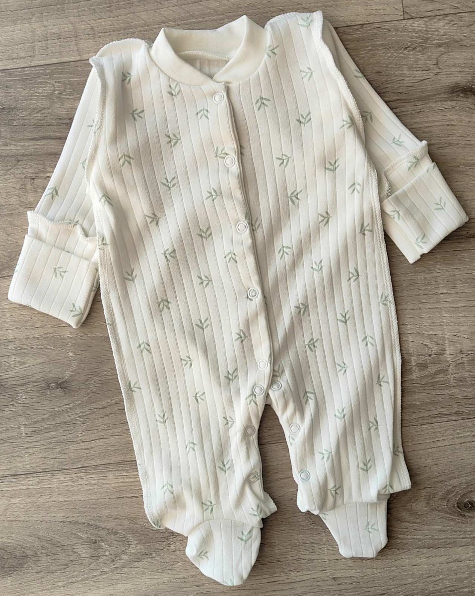 Человечек "листочки" молочный, унисекс 0-3 месяцев оптом уп. - 4 шт.