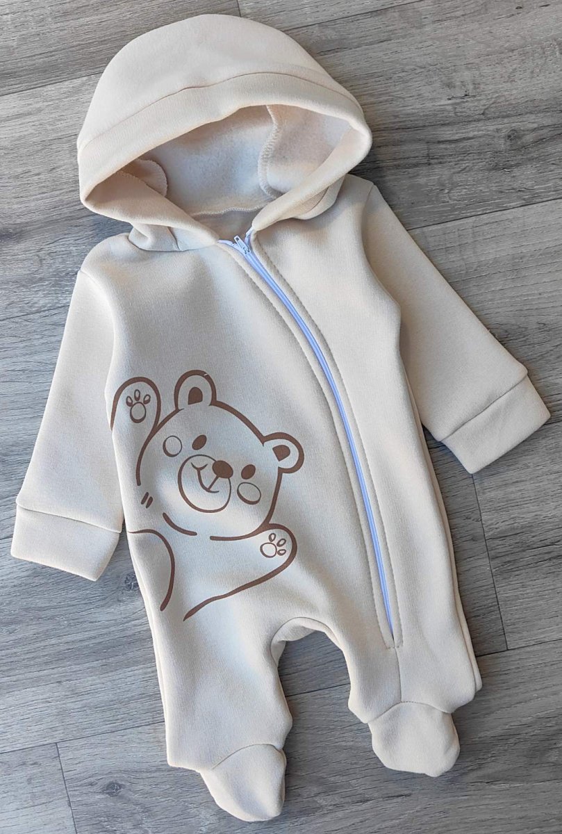 Чоловічок "медведик" бежевий, унисекс 0-3 місяців оптом уп. - 4 шт.