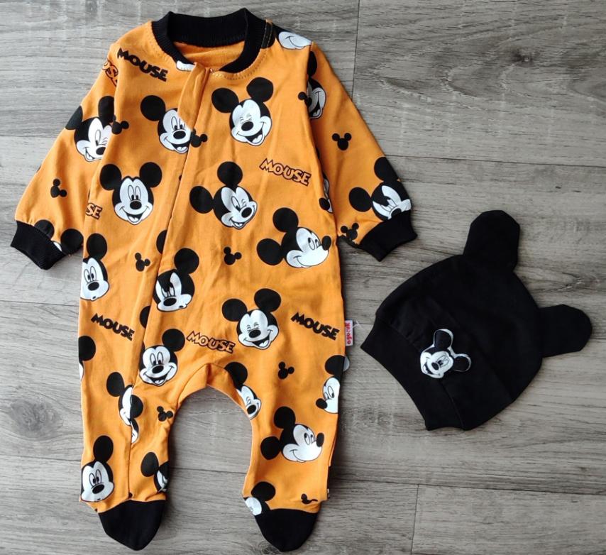 Чоловічок «Mickey Mouse» жовтий, хлопчик 0-3-6-9 місяців оптом уп. - 4 шт.