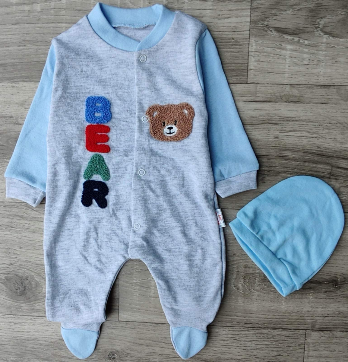 Человечек Pitiko «BEAR» голубой, мальчик 6-9-12 месяцев оптом уп. - 3 шт.