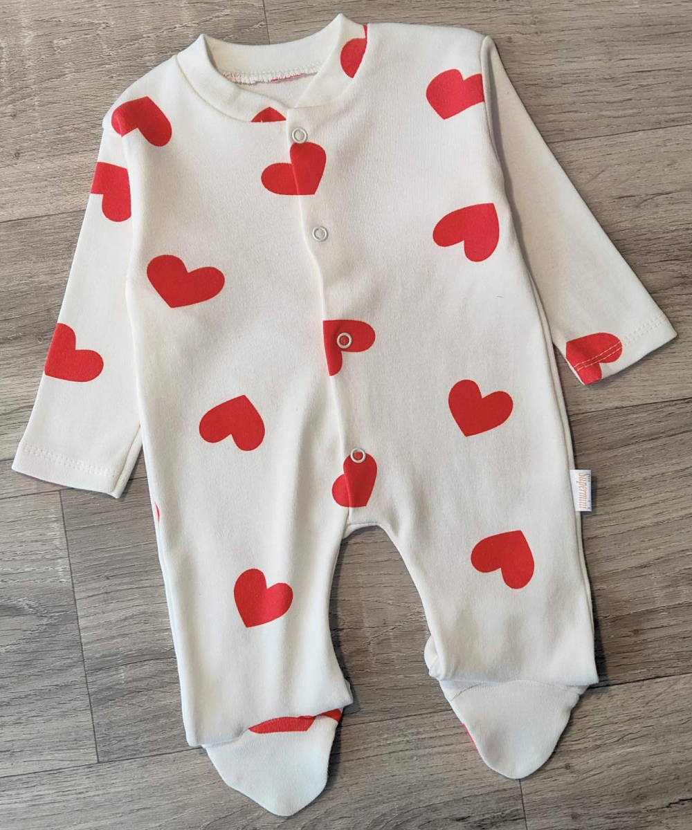 Чоловічок «Сердечки» червоний, дівчинка 0-3-6 місяців оптом уп. - 3 шт.