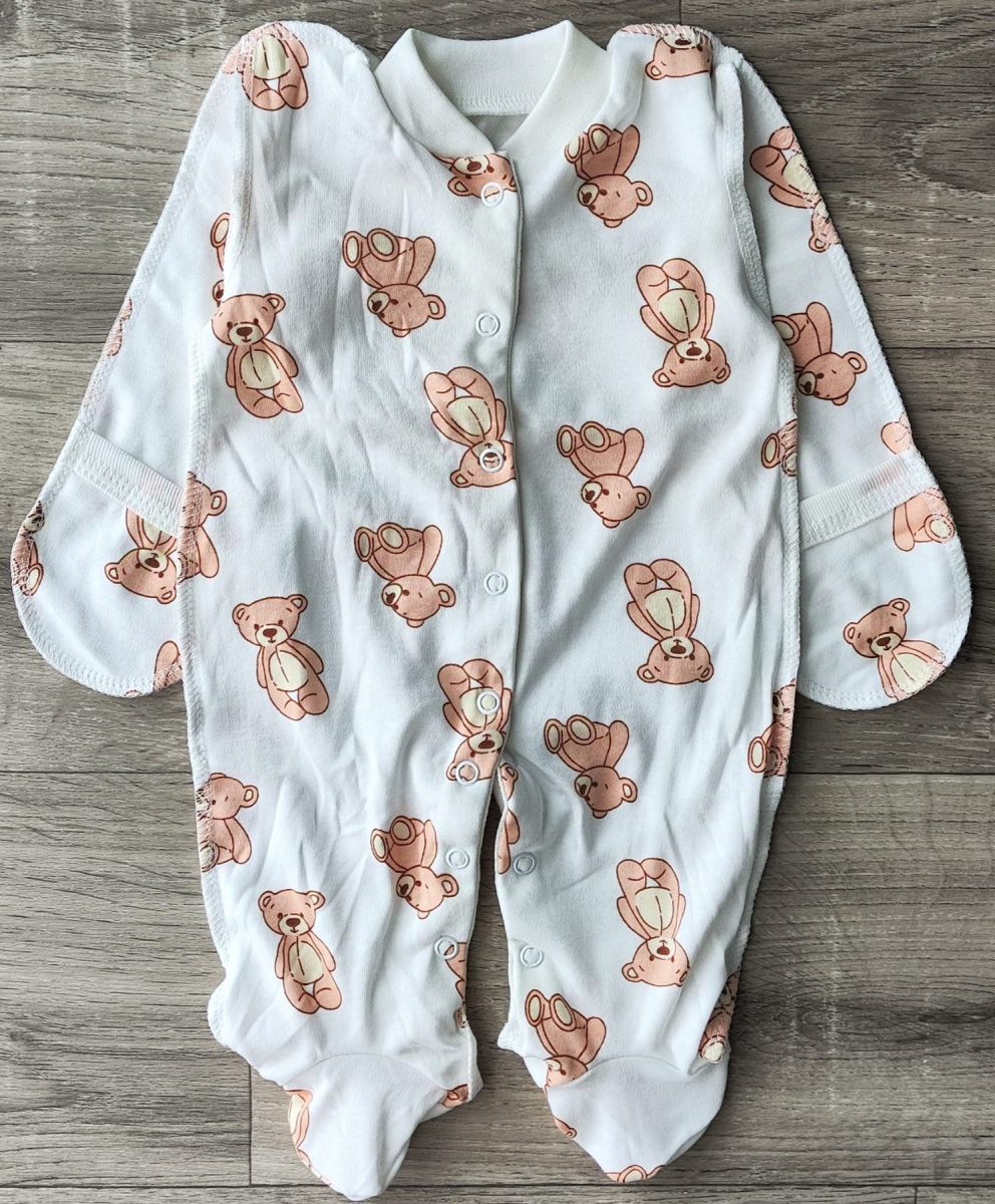 Чоловічок "Ведмедик" молочний, унісекс 0-3-6-9 місяців оптом уп. - 4 шт.