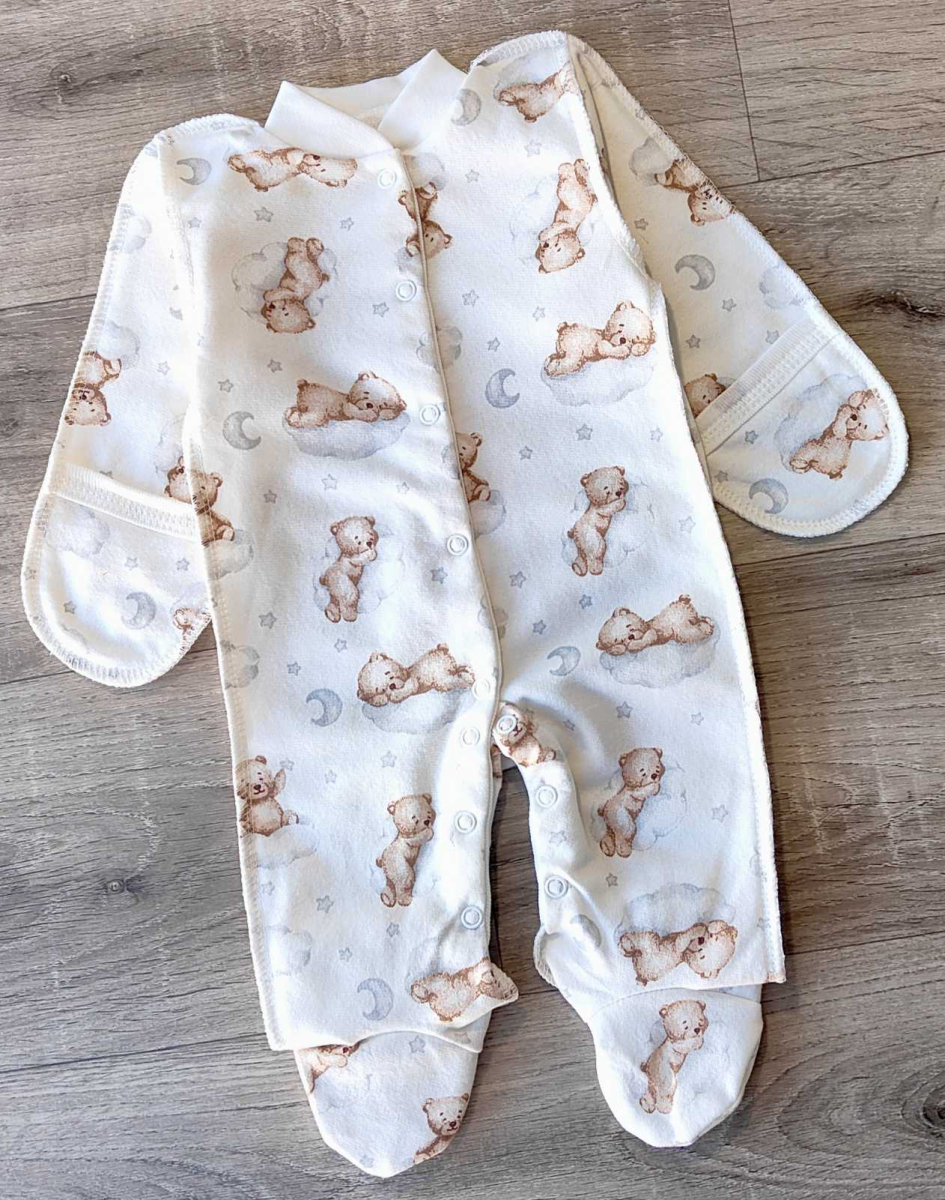 Чоловічок "Ведмедик на хмарі" молочний, унісекс 0-3 місяців оптом уп. - 4 шт.