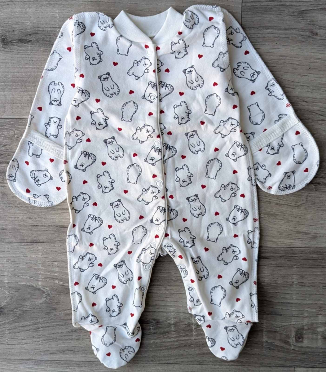 Чоловічок «Ведмедики» молочний, дівчика 0-3-6-9 місяців оптом уп. - 4 шт.
