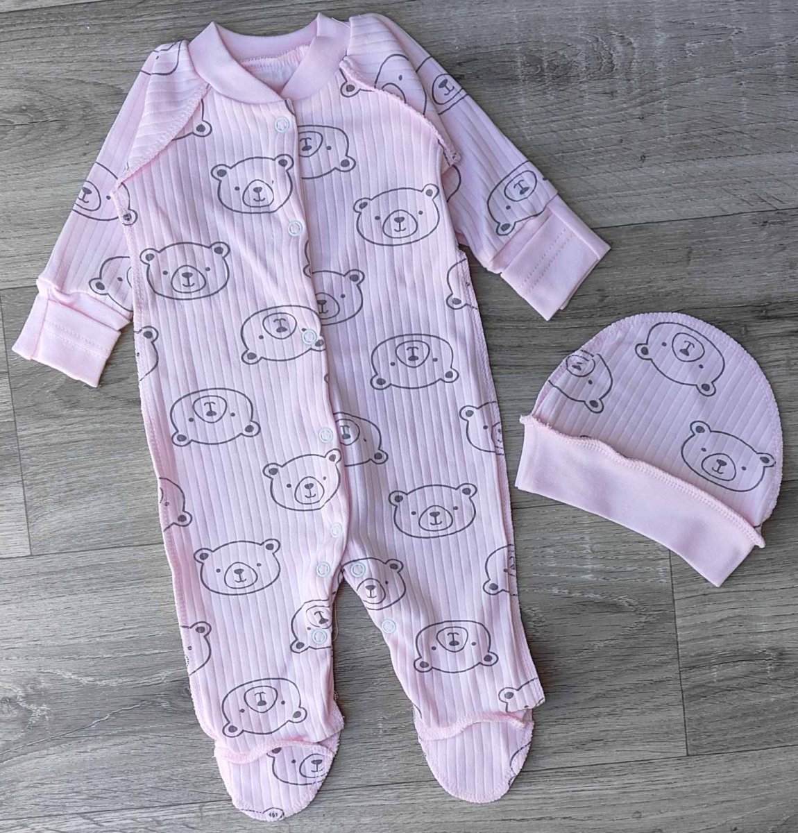 Человечек "Ведмежата" розовый, девочка 0-3-6 месяцев оптом уп. - 3 шт.
