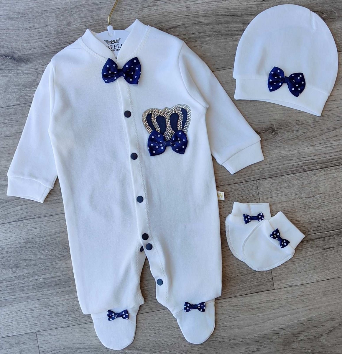 Человечек Waffle "Корона 2" белый и синий , мальчик 0-3-6 месяцев оптом уп. - 3 шт.