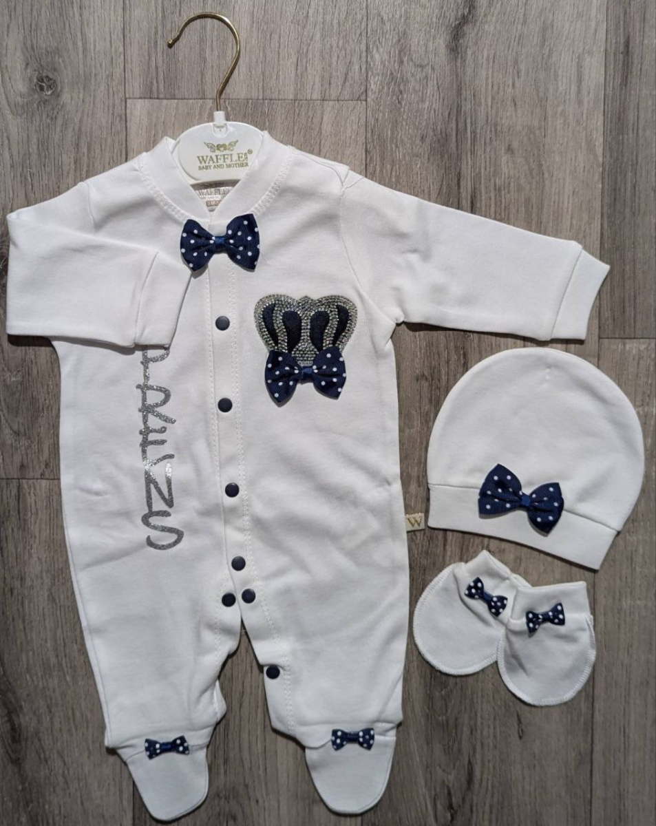 Чоловічок Waffle "Корона+принц" білий, хлопчик 0-3-6 місяців оптом уп. - 3 шт.