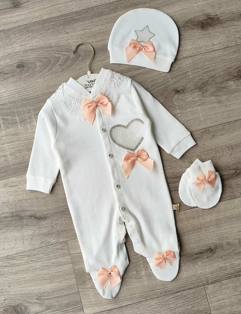 Чоловічок Waffle "Зірочка+серце" білий+персик, дівчинка 0-3-6 місяців оптом уп. - 3 шт.