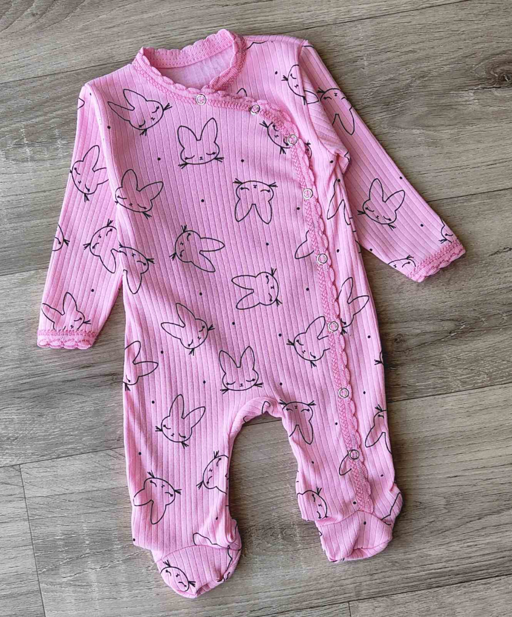 Чоловічок "Зайчик" рожевий, дівчинка 0-3-6-9 місяців оптом уп. - 4 шт.