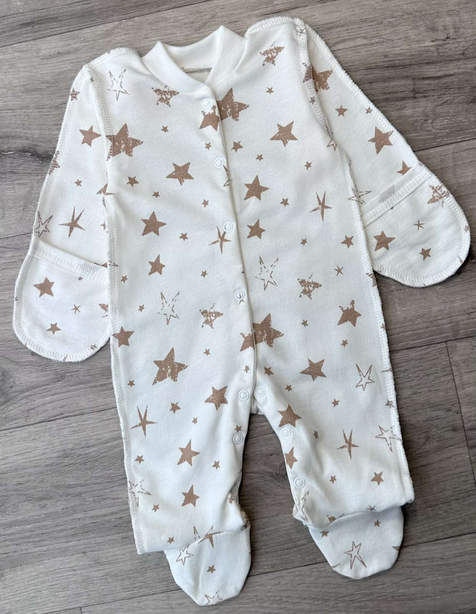 Чоловічок "Зірки" білий, унісекс 0-3 місяців оптом уп. - 4 шт.