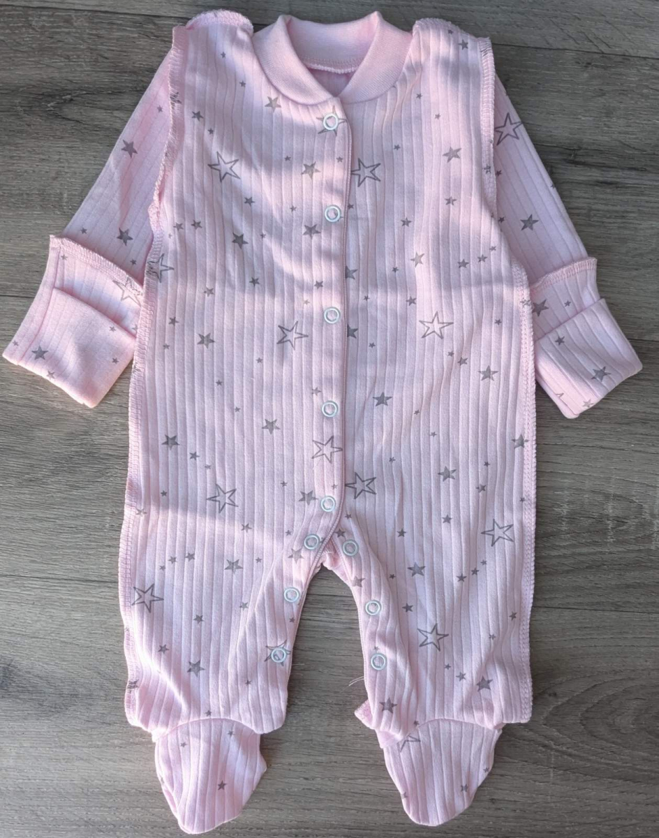 Чоловічок «зірочки» рожевий, дівчинка 0-3 місяців оптом уп. - 4 шт.