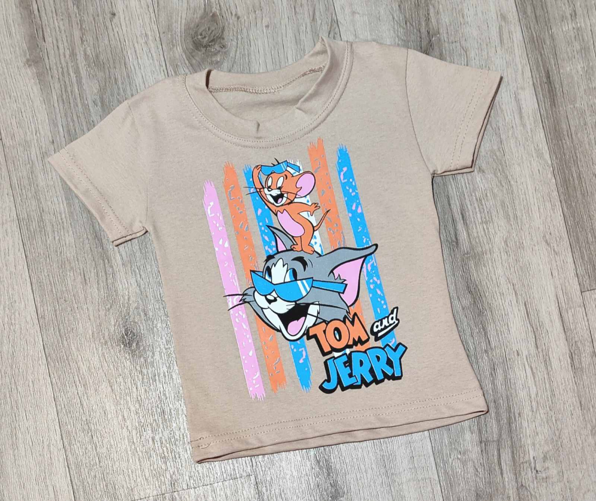 Футболка "Cat and mouse" бежевий, хлопчик 1,5-3-5-7-9 років оптом уп. - 5 шт.