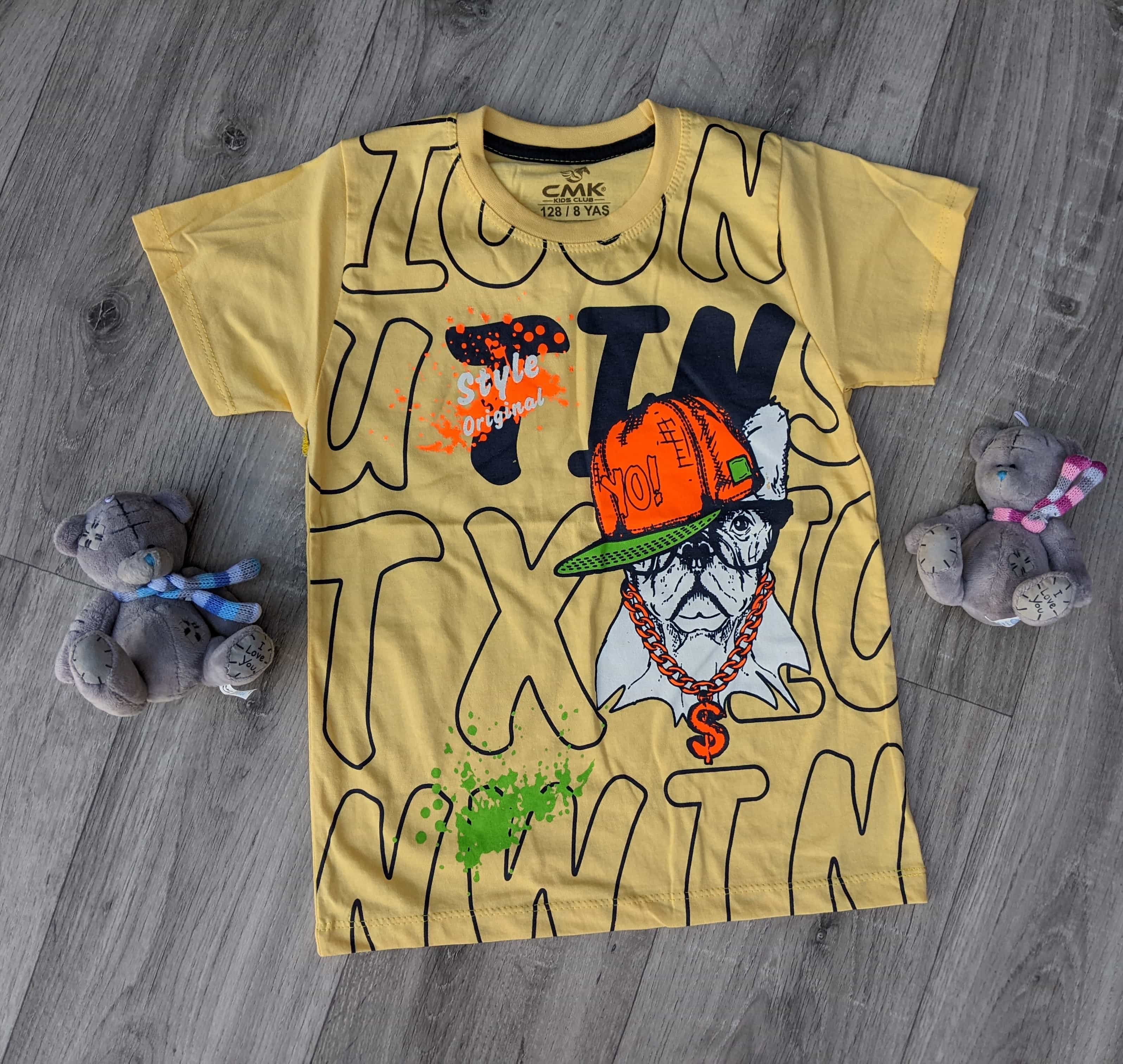 Футболка CMK Kids " Собака", жёлтый, мальчик 8-9-10-11-12 лет оптом уп. - 5 шт.