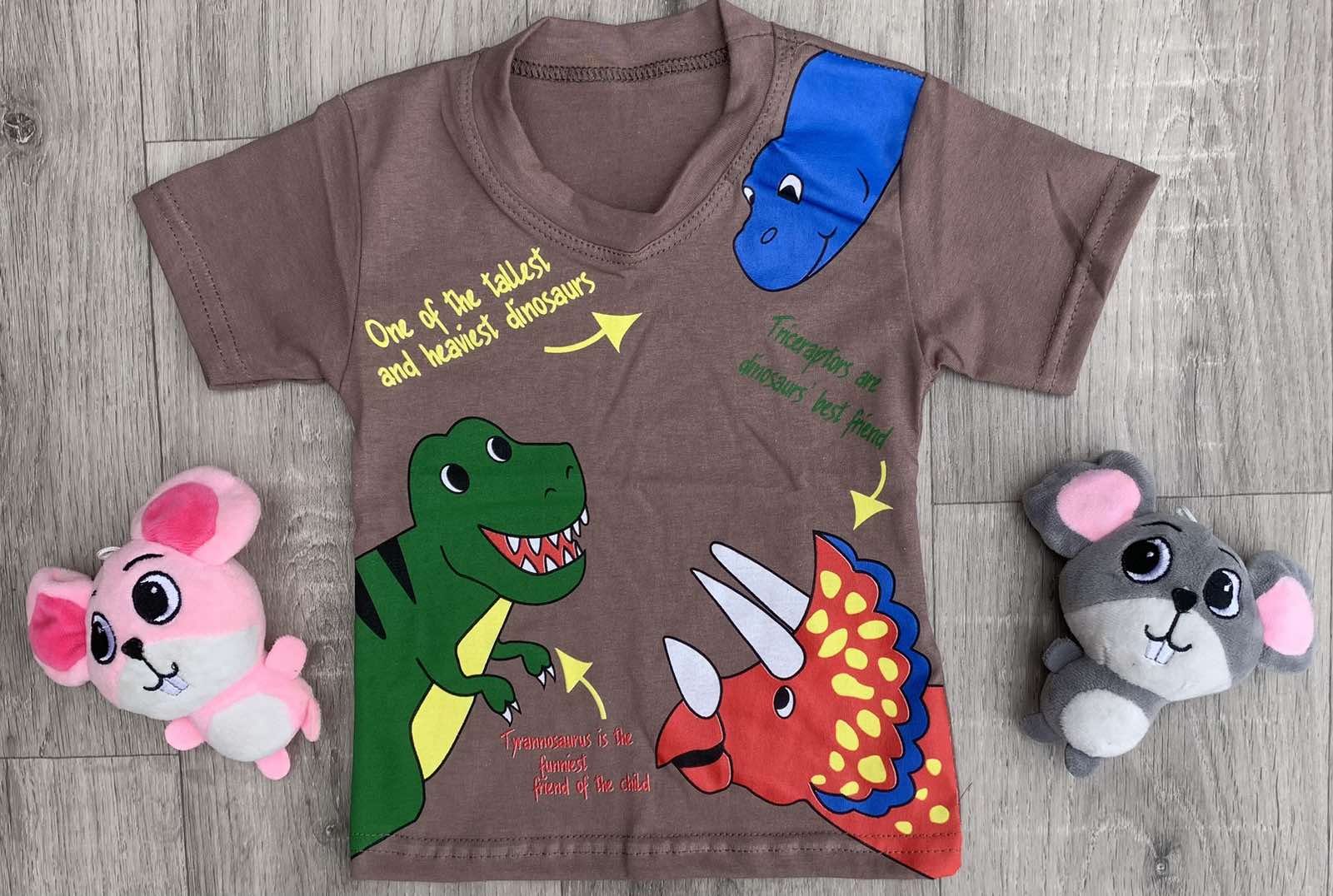 Футболка "Динозаври" коричнева, хлопчик 1-2-3-4-5 років оптом уп. - 5 шт.