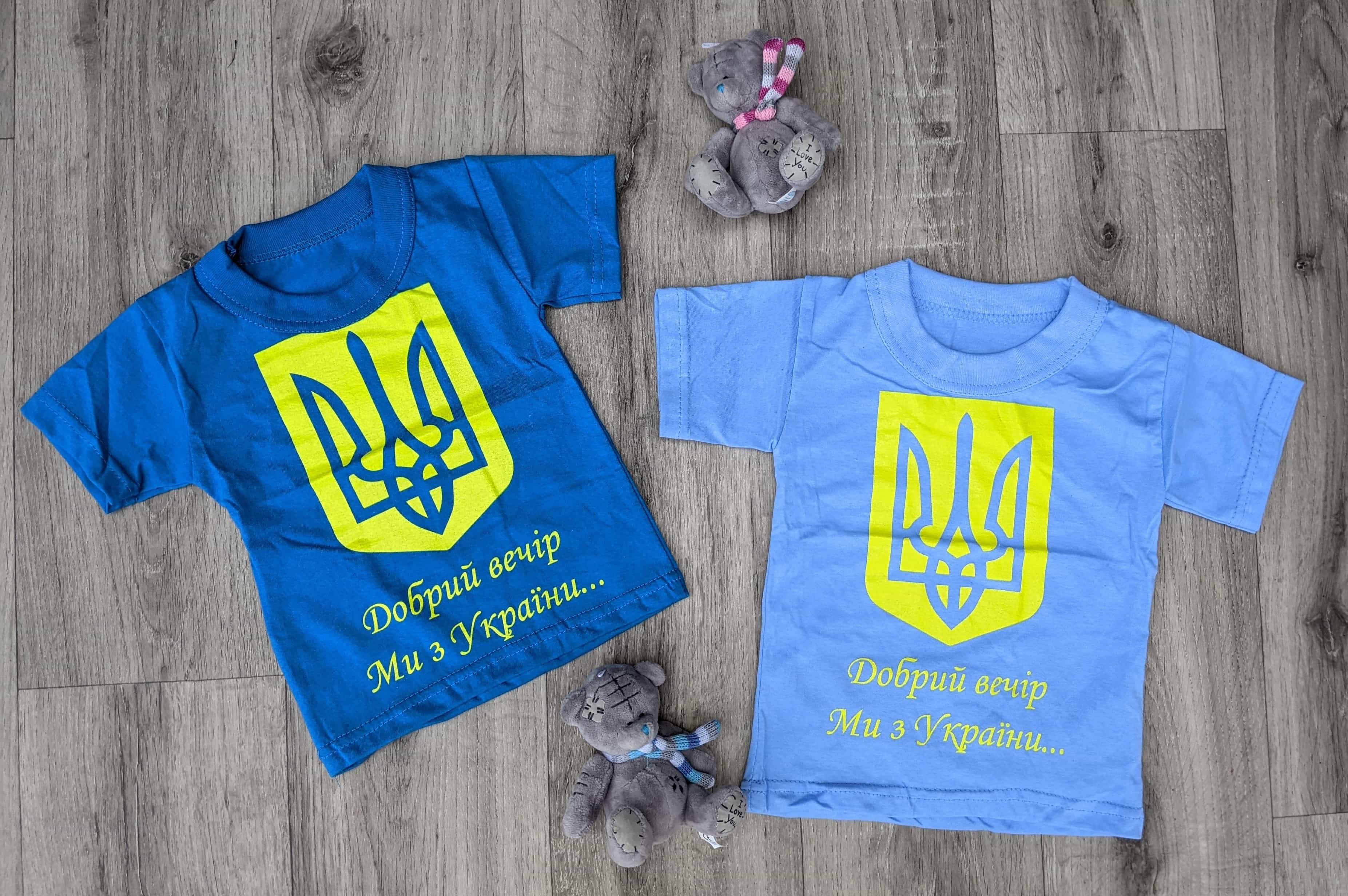 Футболка "Добрий вечір, ми з України", синій, хлопчик 1-3-5-7-9 років оптом уп. - 10 шт.