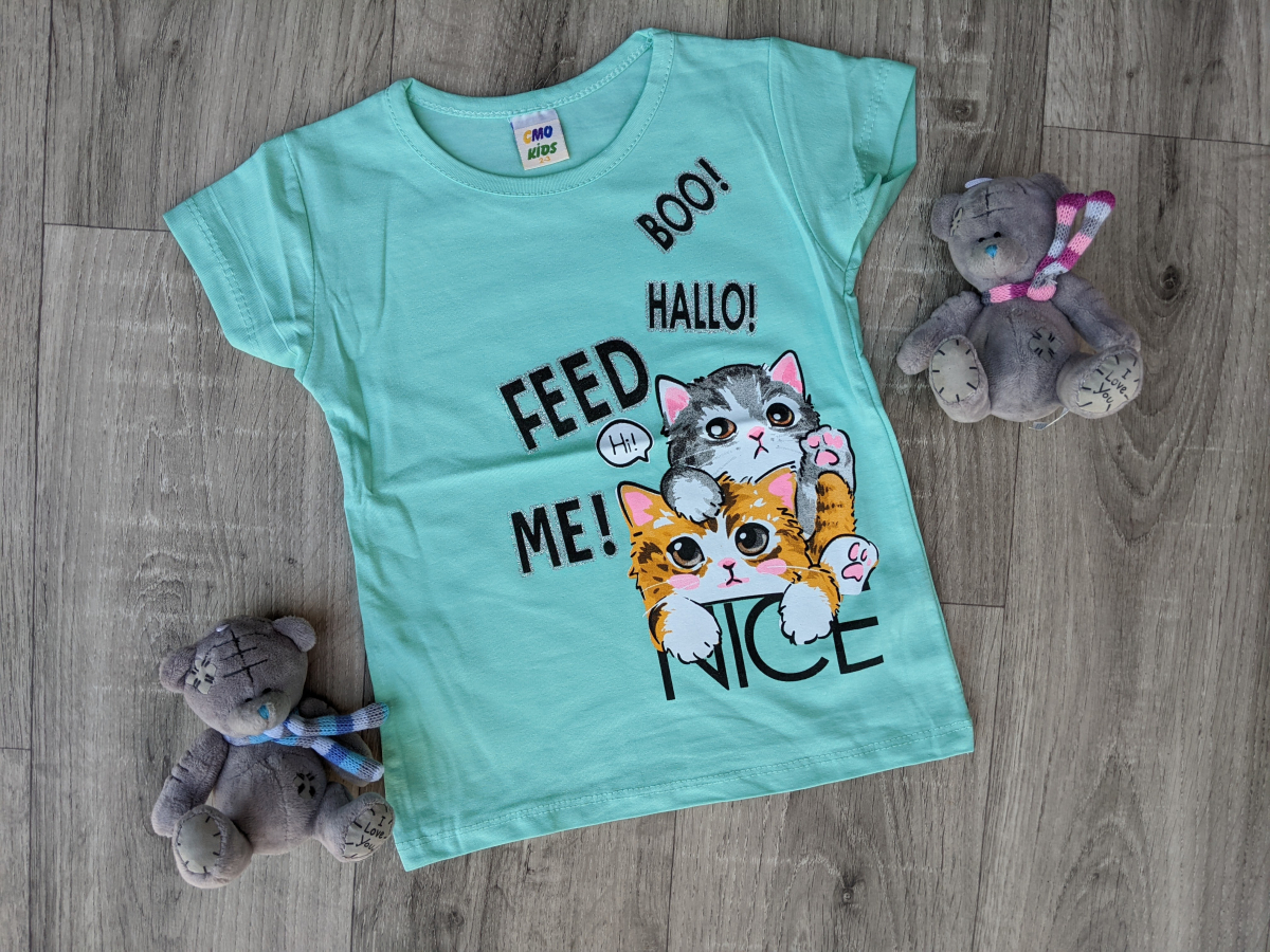 Футболка GMO Kids " Котики", бирюзовый, девочка 2-3-4-5-6 лет лет оптом уп. - 5 шт.