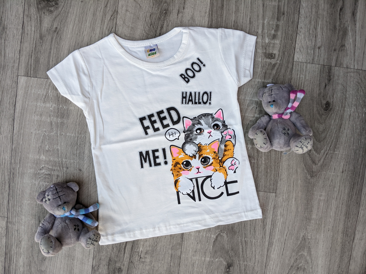 Футболка GMO Kids " Котики", молочный, девочка 2-3-4-5-6 лет лет оптом уп. - 5 шт.