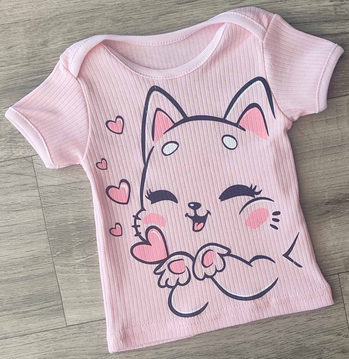 Футболка "Котенок" розовая, девочка 3-6-9-12 месяцев оптом уп. - 4 шт.