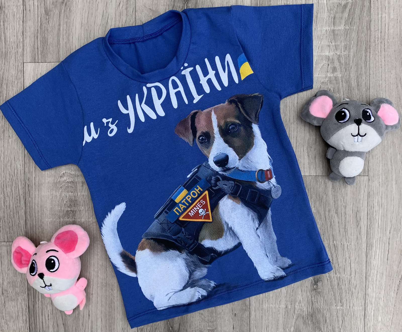 Футболка "Ми з України" синя, хлопчик 4-5-6-7-8 років оптом уп. - 5 шт.