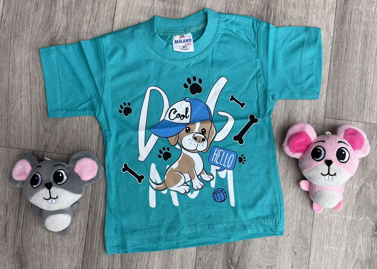 Футболка Milano "Dog" бірюзова, хлопчик 1-1,5-2-3-4 років оптом уп. - 5 шт.
