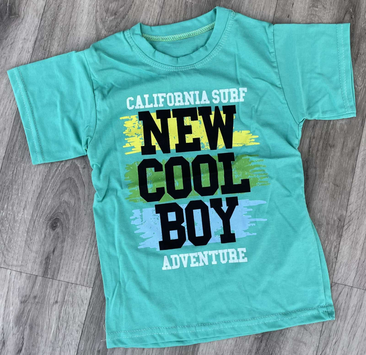 Футболка «New cool boy» бірюзовий, хлопчик 5-6-7-8 років оптом уп. - 4 шт.