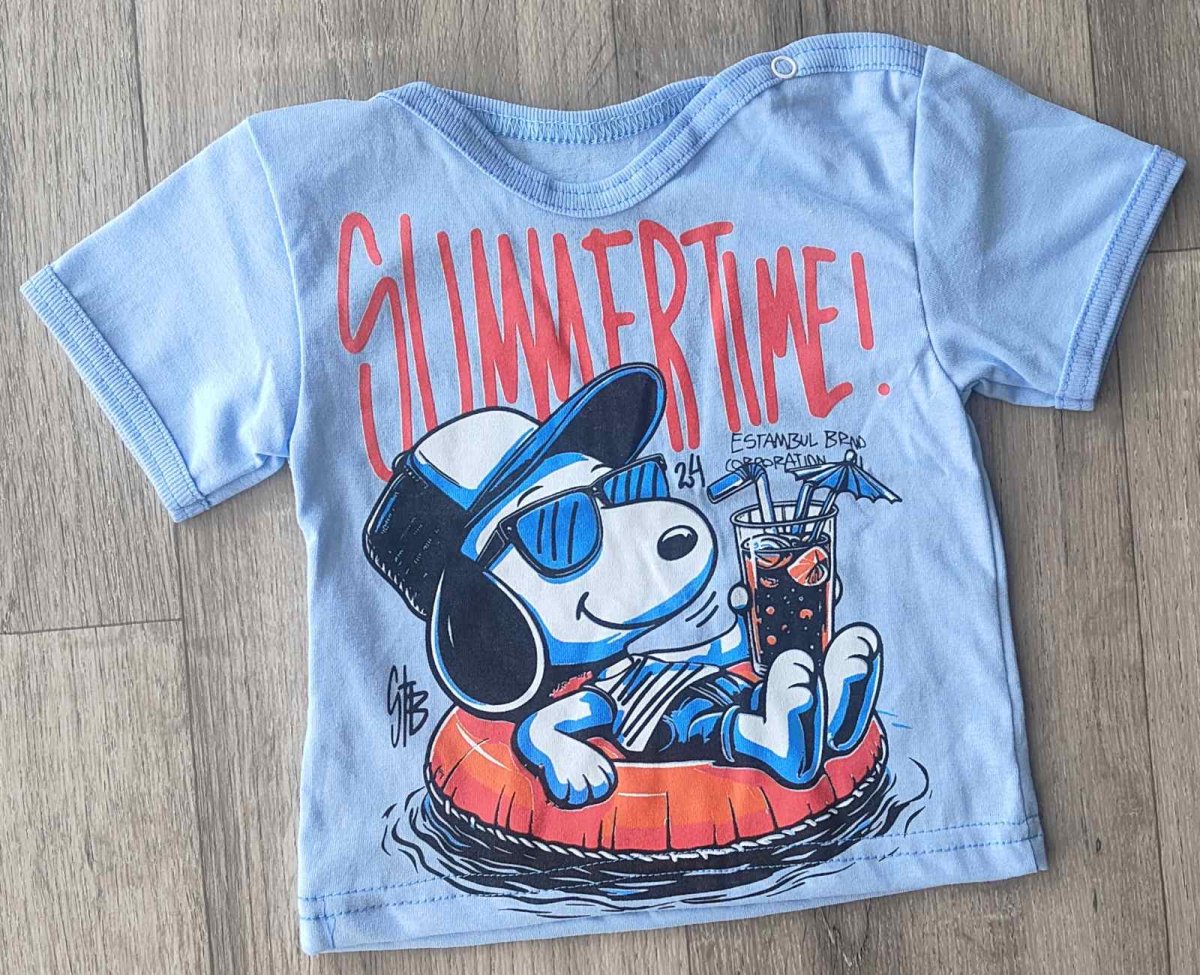 Футболка «Снупи» голубой, мальчик 6-9-12-18 месяцев оптом уп. - 4 шт.