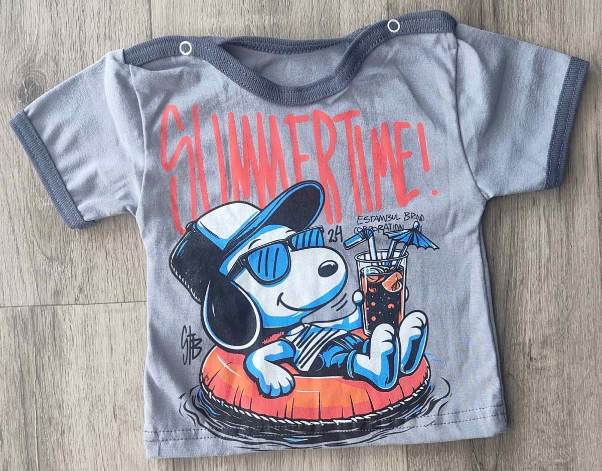 Футболка «Снупи» серый, мальчик 6-9-12-18 месяцев оптом уп. - 4 шт.