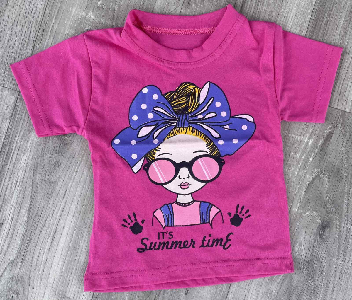 Футболка "Summer time" малиновий, дівчинка 1-2-3-4-5 років оптом уп. - 5 шт.