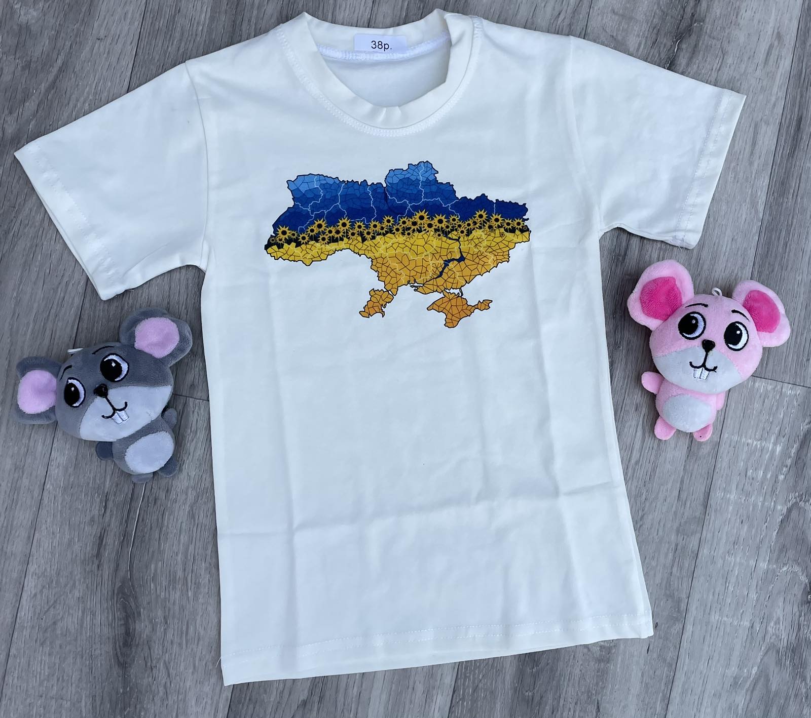 Футболка "Україна" молочна, унісекс 10-11-12 років оптом уп. - 3 шт.