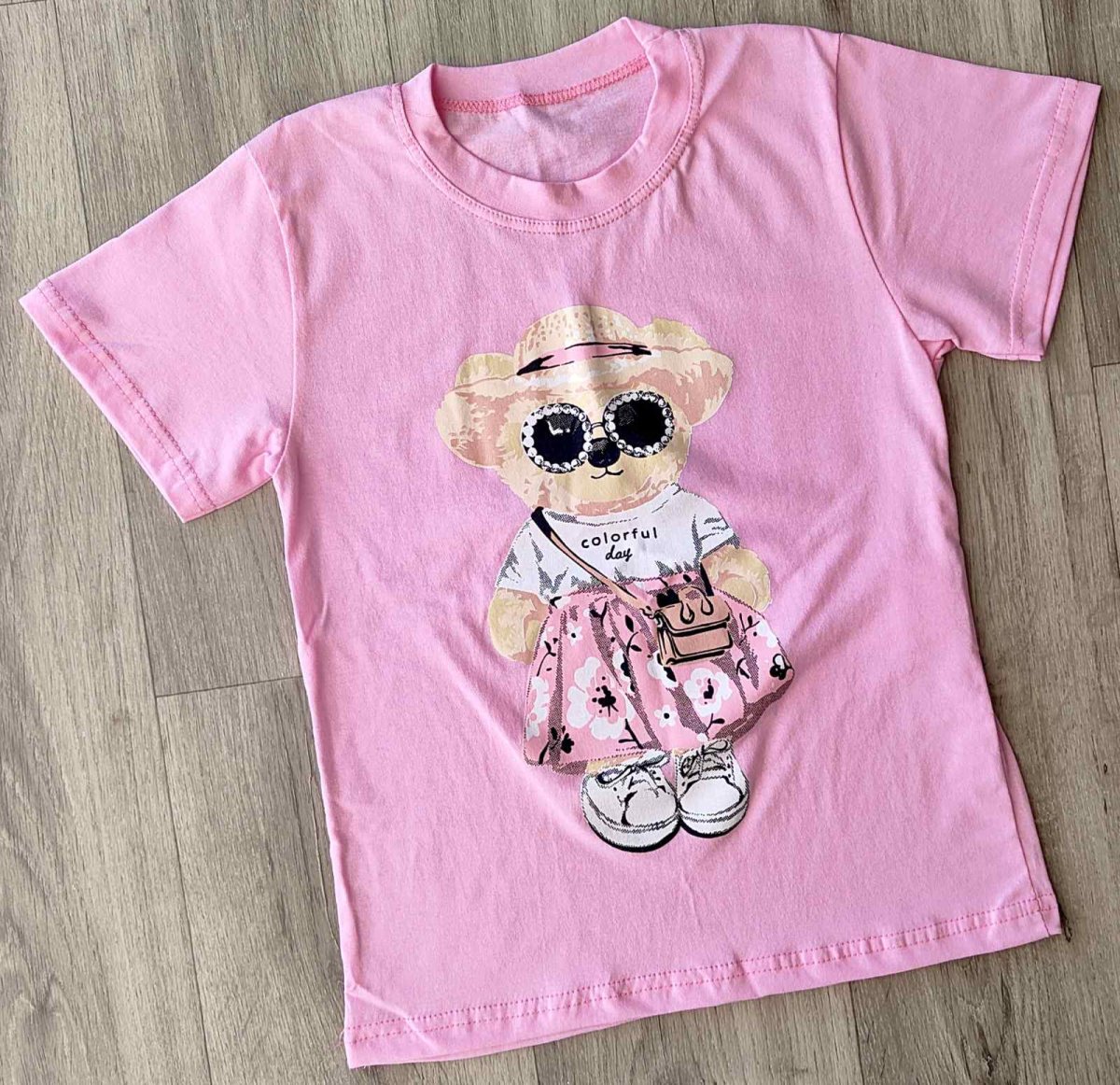 Футболка "Ведмедик" рожевий, дівчинка 5-6-7-8 років оптом уп. - 4 шт.