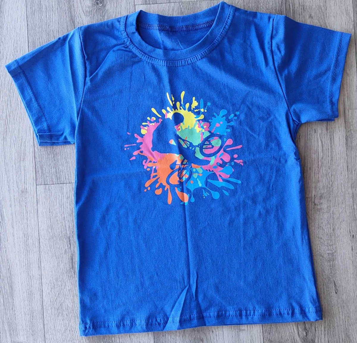 Футболка "Велосипедіст у фарбах" синій, хлопчик 5-6-7-8 років оптом уп. - 4 шт.