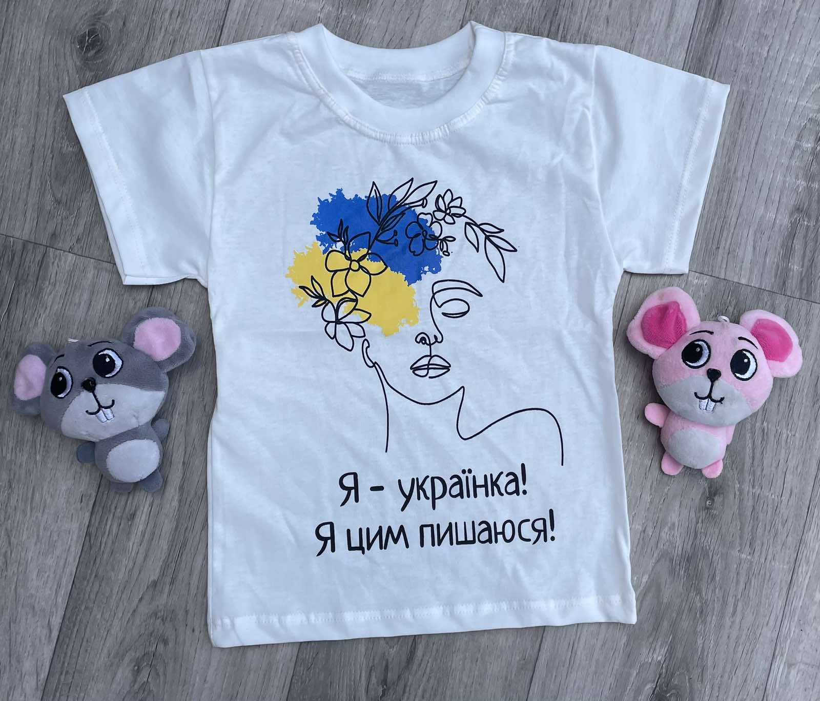 Футболка "Я Українка" молочна, дівчинка 3-4-5-6-7-8 років, фото