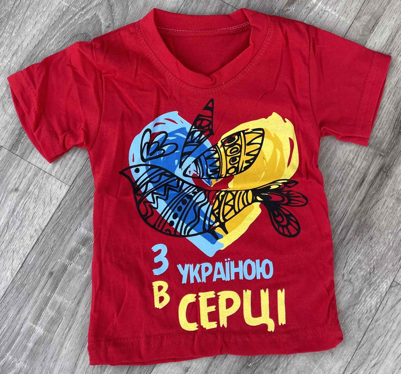 Футболка «З Україною в серці» червоний, дівчинка 1-2-3-4-5 років оптом уп. - 5 шт.