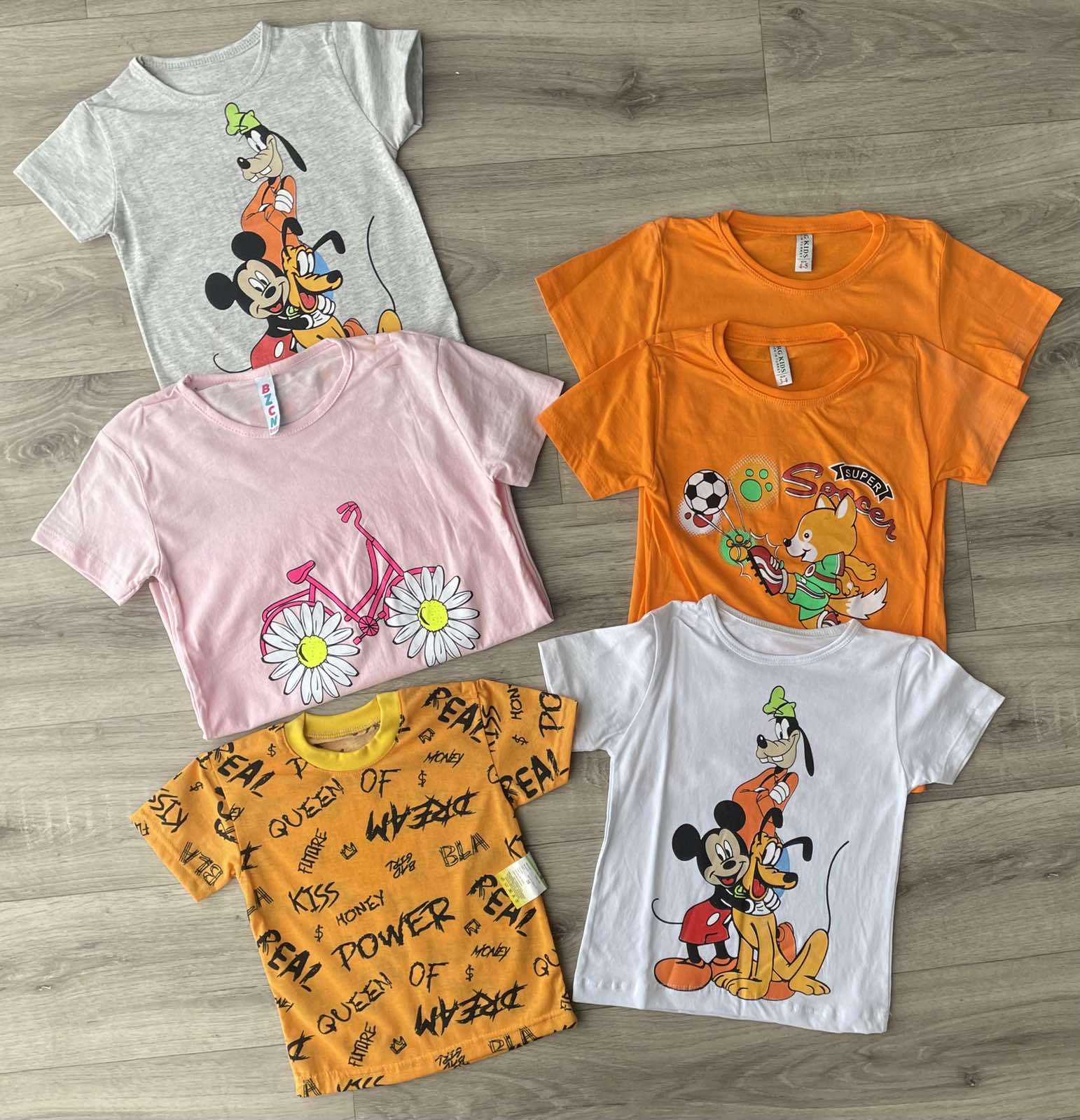 Футболки «Малюнки» мікс кольорів, хлопчик+дівчинка 1-3-4-10 років оптом уп. - 1 шт.
