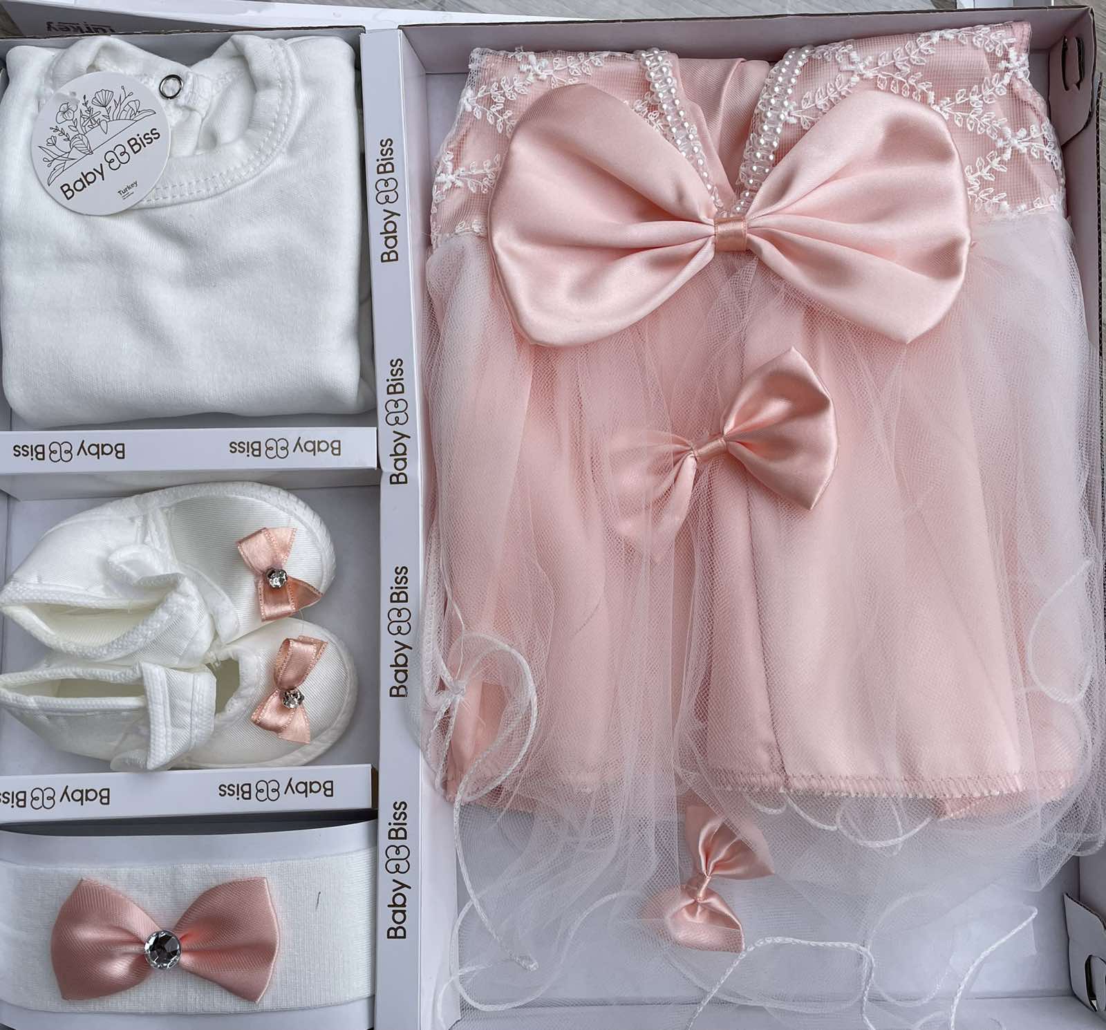 Комплект Baby Biss "Бантик" персиковий з білим, дівчинка 0-3 місяців оптом уп. - 1 шт.