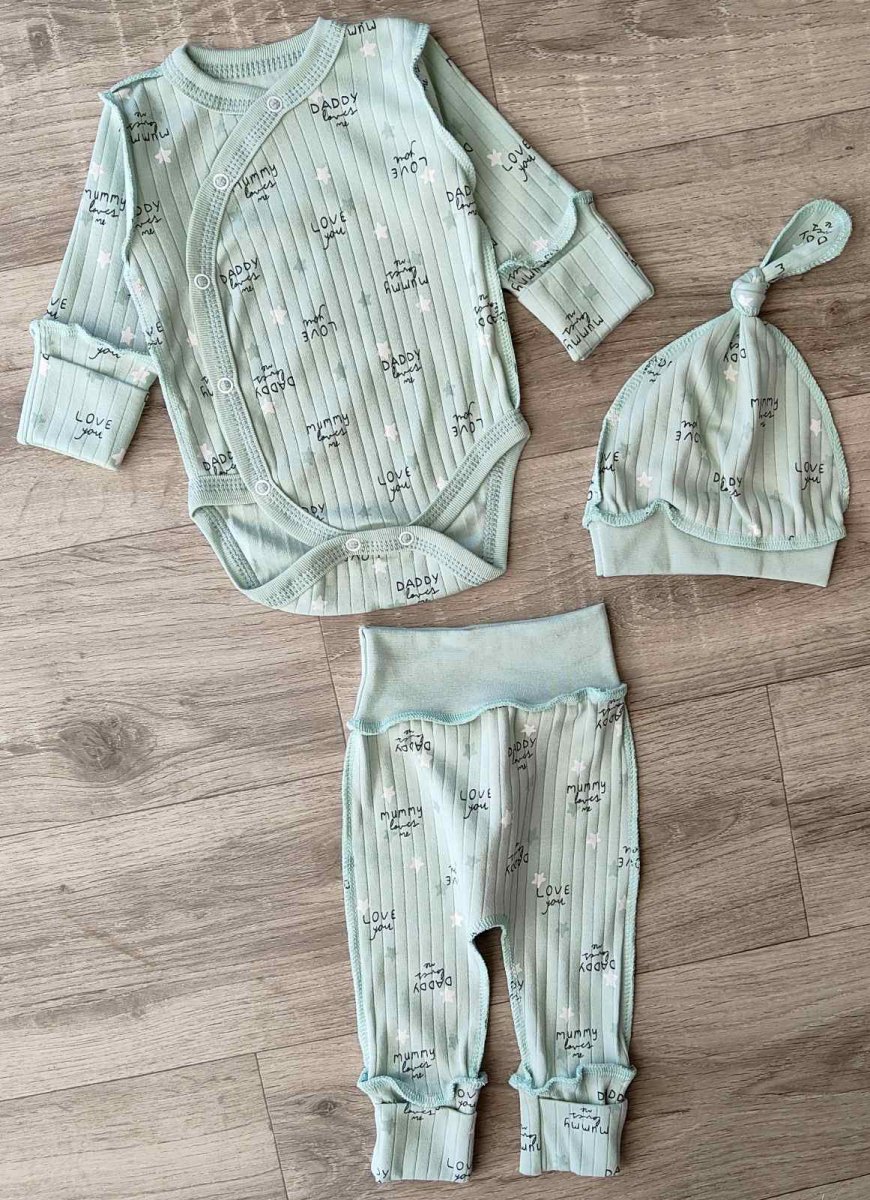 Комплект «Dad loves me» зелений (м'ятний/бірюзовий), унісекс 0-3 місяців, фото