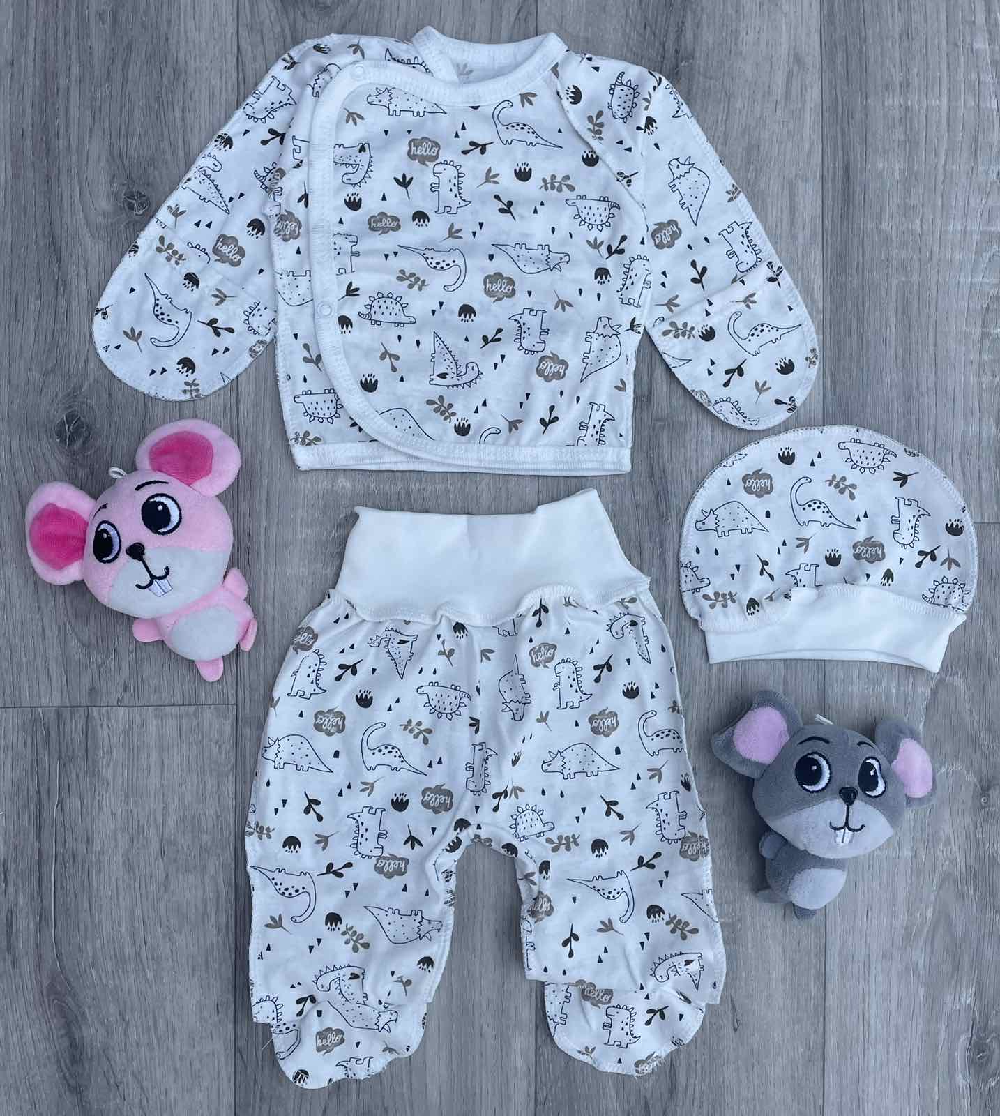Комплект "Динозаври" бежевий, унісекс 0-3 місяців оптом уп. - 2 шт.