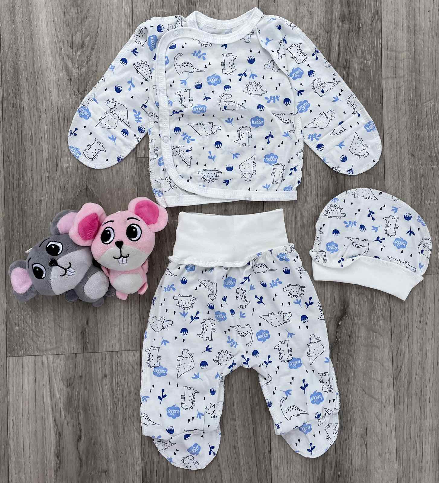 Комплект "Динозаври" молочний, хлопчик 0-3 місяців оптом уп. - 2 шт.