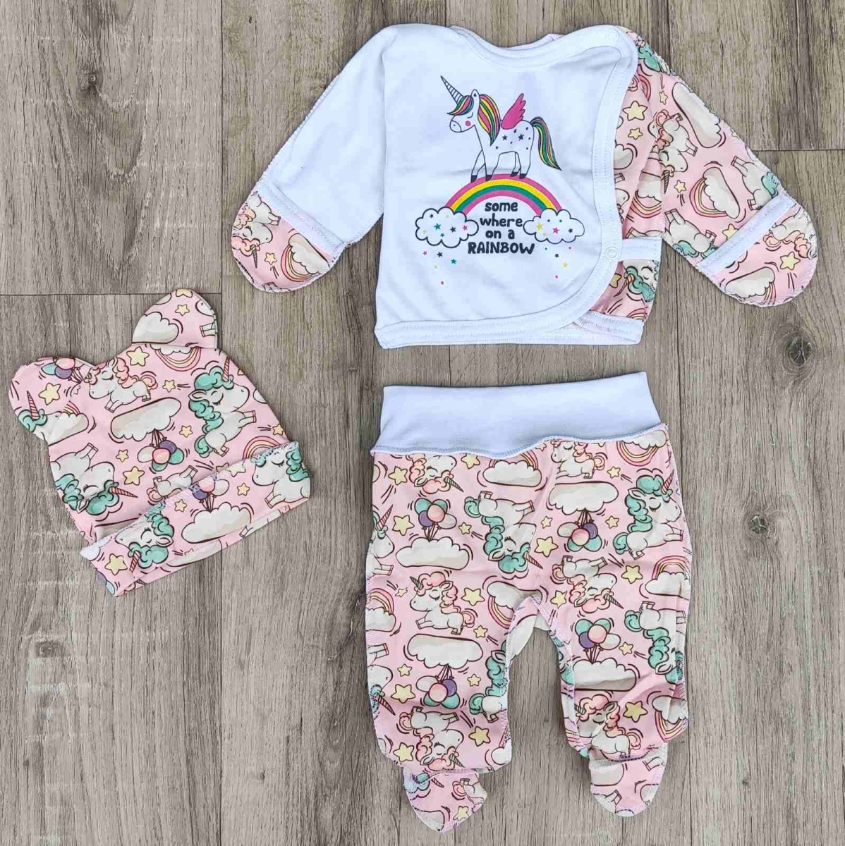 Комплект «Єдиноріжка» рожевий, дівчинка 0-3 місяців оптом уп. - 2 шт.
